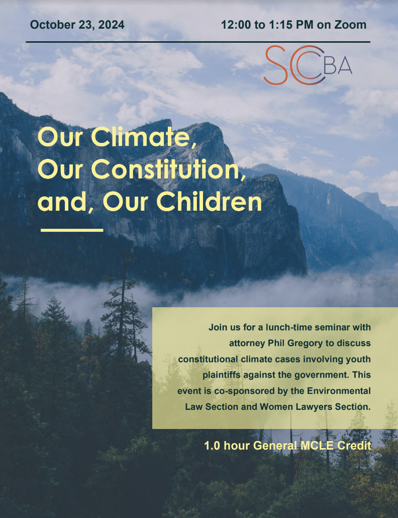 Join us for a lunch-time seminar with attorney Phil Gregory to discuss constitutional climate cases involving youth plaintiffs against the government.