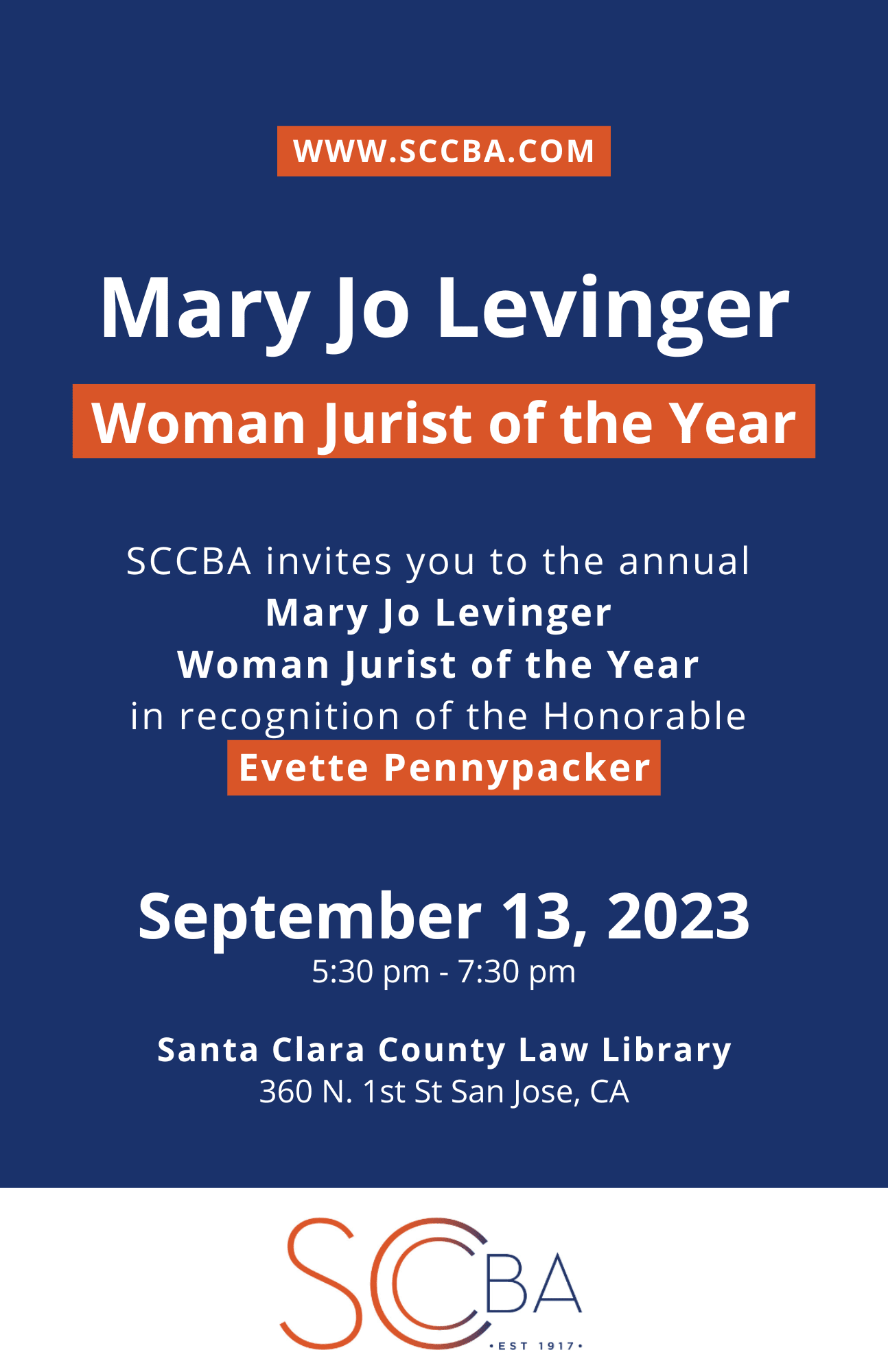 SCCBA cordially invites you to the annual Mary Jo Levinger Woman Jurist of the Year