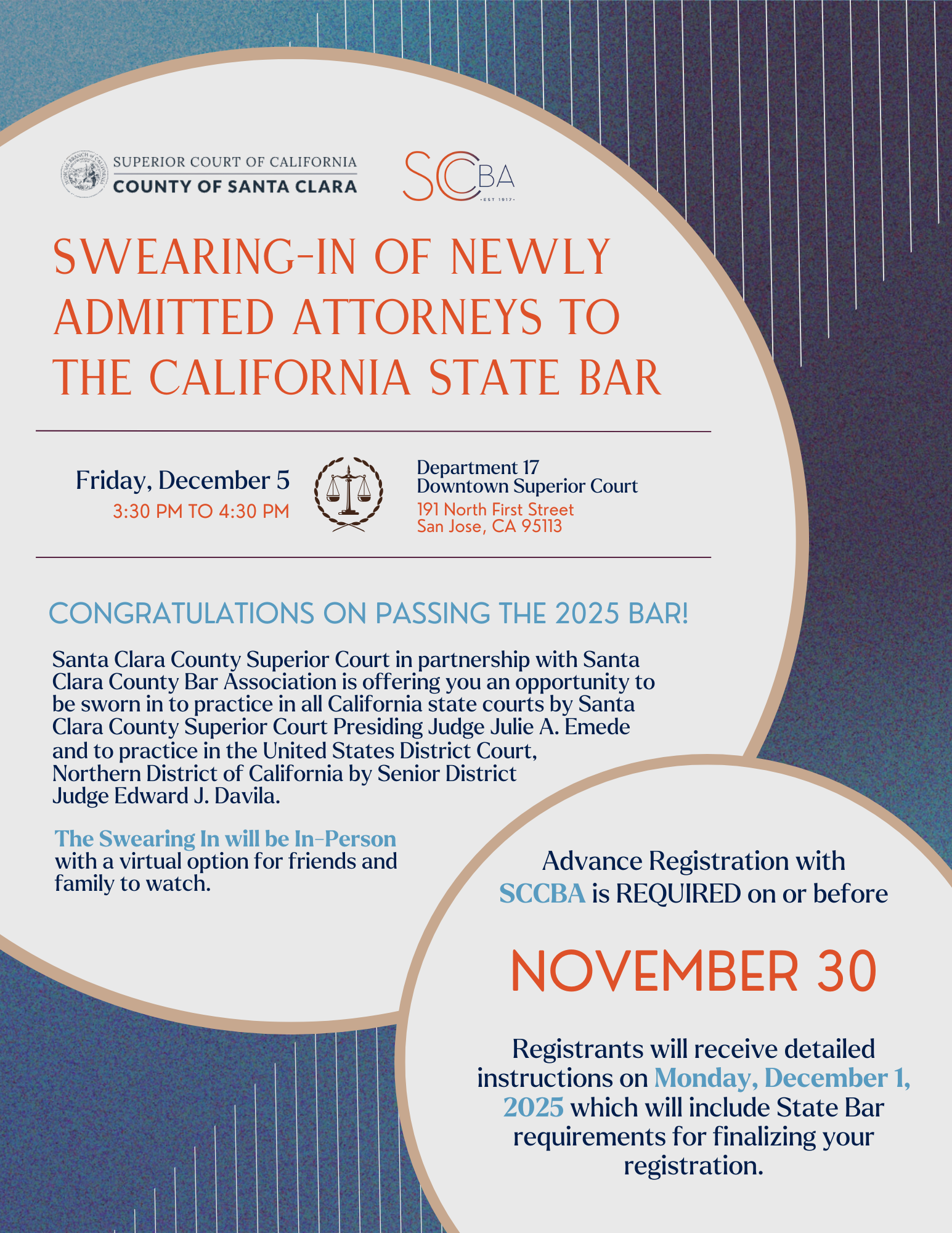 Registrants will receive detailed instructions on Monday, December 1, 2025 which will include State Bar requirements for finalizing your registration.